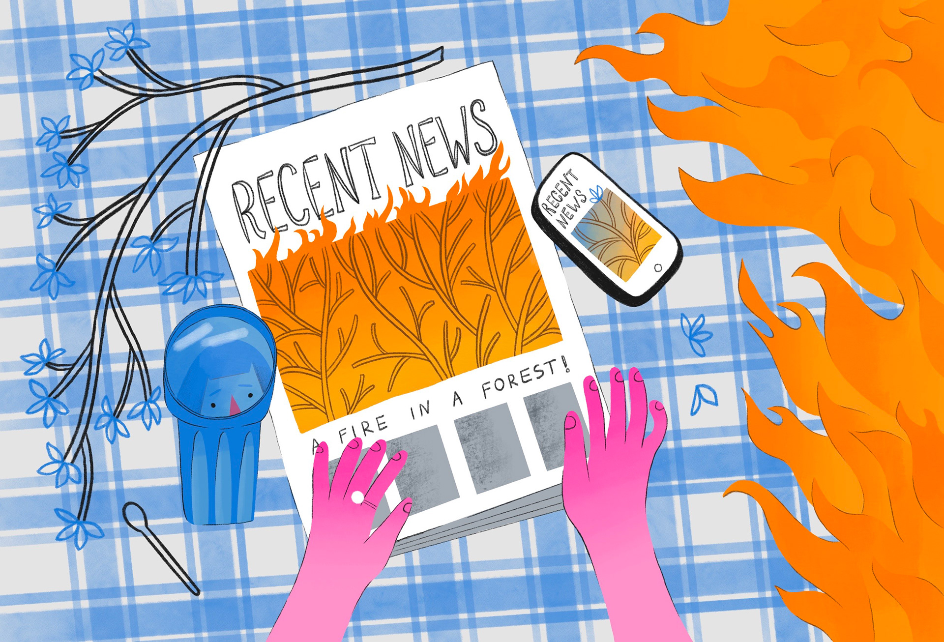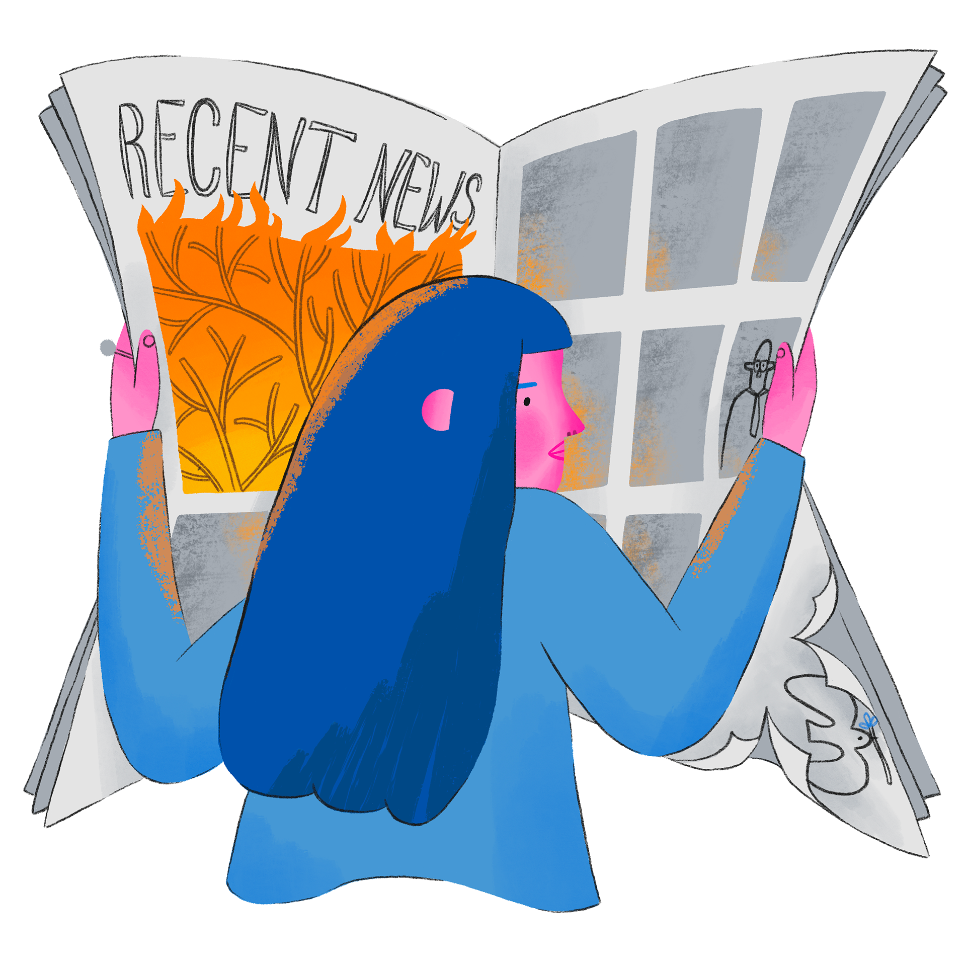 Project description: Several editorial illustration for the article about getting anxious after reading news and what people and news writers can make about it. I made a cover and three small illustrations.
